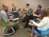 The Cafés were sparked by SXSW, where innovative topics are discussed and the rooms are a mix of altruistic techies, nonprofits, and startups. The Cafés have successfully replicated that energy with the focus on local innovators. Topics are chosen for impact and interest, and library staff learn as we go. Our moderator prepares by researching the topic and creating support material; however, the discussion could go anywhere. Everyone is seated together in a circle that mixes featured speakers and the audience who came to meet them. Everyone is introduced: no PowerPoints, no lectures, no panelist table, no hierarchy.