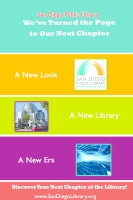In 2012, while the new Central Library was under construction, SDPL began the process of rebranding the Library to better reflect the direction that it was headed to meet the future needs of the community. At a Staff Development Day there were two exercises to help the staff redefine SDPL as a culture and how we wanted to present ourselves to the community. Staff also voted on five potential new logo designs that had been created for the Library by a San Diego State University (SDSU) graphic design class. From that process emerged a clear logo winner, a tagline "Discover Your Next Chapter" and a "Who We Are" statement. The new brand was launched in April 2013 to coincide with National Library Week. The theme used for the launch was: “We’ve Turned the Page…A New Look, a New Library, a New Era.” While rebranding has given SDPL a more professional, identifiable and updated look, the most important aspect of the change is how it has altered the way the staff members think about ourselves and how we portray ourselves to the public. It has instilled a renewed pride about the programs and services we provide. As Library Director Deborah Barrow said at the time of the launch, "It represents a rebirth for the entire San Diego Public Library system. SDPL’s new logo and rebranding effort reflects this new mindset. It has been exciting to witness the level of energy from staff regarding this creative process.” The new logo symbolizes the closing of one chapter in our history and the opening of a new one focused on the future and all that it has to offer.
