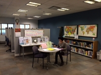 We created an adult ESL program designed to serve the specific needs of our diverse community. New students are assessed for English skills (vocabulary, grammar, listening) and an individual study plan follows. Depending on skills and personal goals, students use computer software, participate in different level conversation classes, book discussions and receive one-on-one tutoring on a weekly schedule. The ESL/Literacy Office monitored by staff includes 30+ English teaching software programs available on eight computers. We began an evening ESL writing class for advanced level students meeting once a month and lessons and homework are completed online.