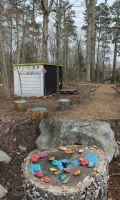 Durham County Library North Regional partnered with a nearby community farm and UNC–Chapel Hill studentsto convert a small, unused wooded lot into the Library Link Trail: an interactive outdoor space featuring five literacy stations – a sound garden, reading center, theatre, math center and fossil dig.