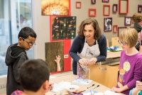 Kindergarten through junior high youth worked directly with a teaching-artist in residence in a four-week series of drop-in activities and registered workshops, all of which connected participants to creativity, play, and nature. Youth created individual and collaborative works, with final paintings and multimedia pieces exhibited at an all-ages library event.