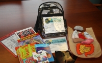 STEM backpacks are designed for K-5th grade students. Currently, there are five themes with five identical backpacks per theme: buoyancy, magnetism, human body, weather and outer space. Each backpack includes four books, a DVD, interactive learning objects, factual inserts with information and instructions for additional experiments along with a quiz.