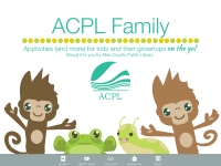 The ACPL Family App is designed for parents and caregivers of children from birth through elementary school. Intended to be used by adults and children together to promote age-appropriate learning, it features videos, push notifications of early literacy tips, a library events calendar, a reading timer, and customized booklists.