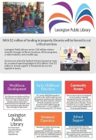 The state legislature, led by a Republican super-majority, proposed to address a statewide pension crisis by means that would have cost LPL up to $1 million annually. Lexington’s legislators, predominately Democrats, lacked authority to prevent the changes, and other state libraries were not as heavily impacted by the specific legislation proposed. We created a legislative platform positioning our libraries as a vehicle for community, economic and youth development, carefully crafting the message for bipartisan appeal.