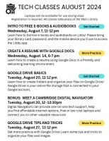 Through these programs and help sessions, CPL is building a community of motivated patrons seeking to improve their tech skills and access- skills that are essential to participating in civic life here in Cambridge and beyond. Our next steps are implementing Mass. Broadband Institute funding toward a Digital Navigators Program, which will connect residents to a wide array of social service and digital supports. Patrons report leaving our sessions feeling confident and knowledgeable of the technical tools they need. For a patron who's hard of hearing, feels self-conscious and get lost easily, the 1-1s help them "feel self-sufficient!"