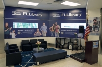 The Broward County FLLibrary is a satellite library featuring the latest in streaming media technology that opened in June 2019 at the Fort Lauderdale-Hollywood International Airport (FLL). Located between Terminals 3 and 4, it’s an innovative space where passengers can get free digital music and movies from the library’s collection via a QR code.