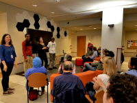 There are plans to update two floors of the library which will require significant construction. Prior to finalizing designs, library staff gained knowledge in UX and design thinking principles, performed patron observations and identified an underutilized area to quickly update. The team’s goal was to create a flexible space that includes seating options for quiet and social use, enables access to and use of laptop computers and can be used for programs.