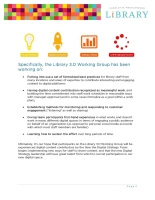 The Charlotte Mecklenburg Library 3.0 Team began as a pilot for managing social media presences and expanded to a Working Group comprised of about 20 staff members from many different branches and areas of expertise. Today it is a model of social media engagement between the Library and its stakeholders.