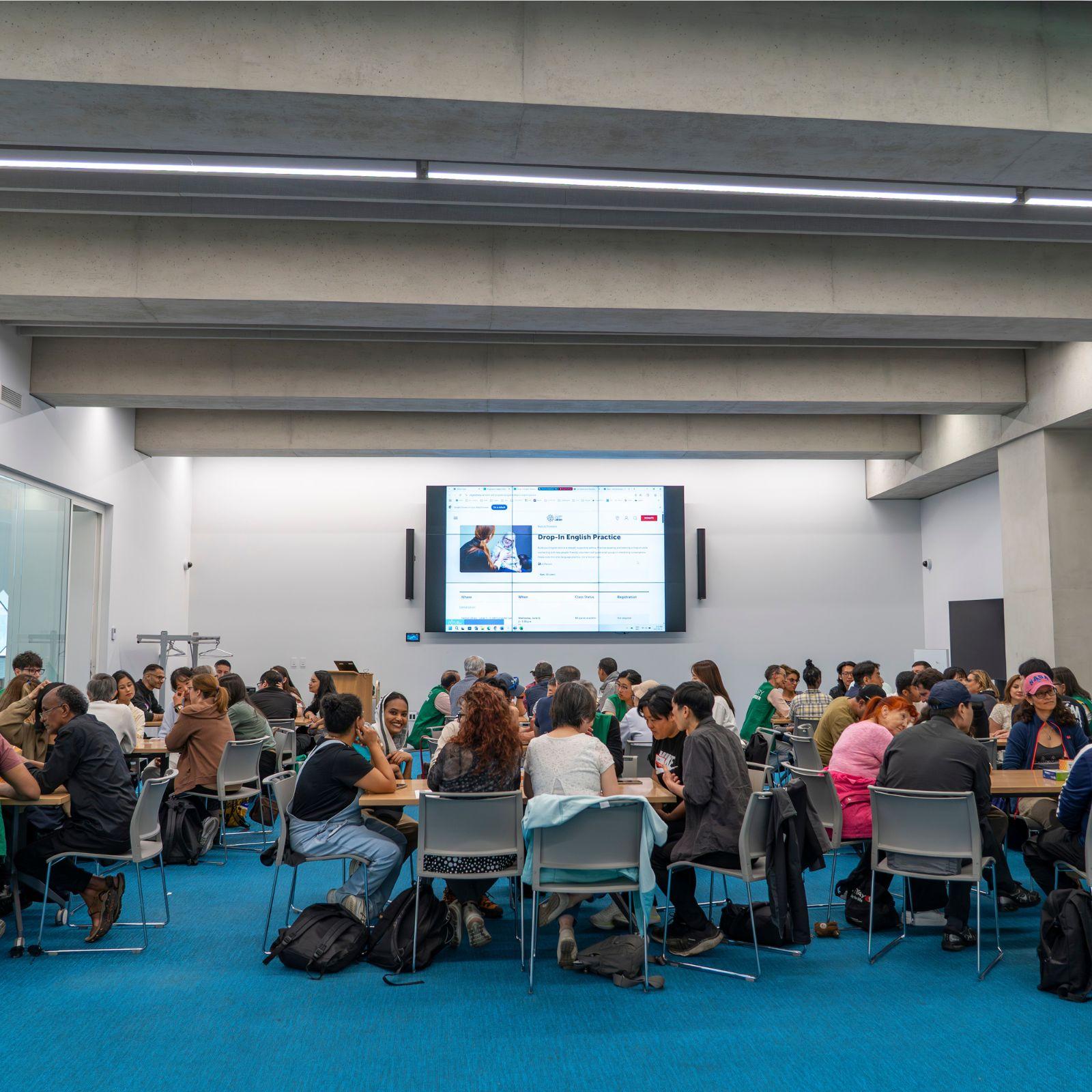English language learning opportunities at the Library need to be accessible, flexible, and extend other community programs. Structured programs can deter newcomers who can’t commit long-term. Drop-in English Practice evolved from a structured, module-based program to a flexible, informal format that fosters connection and engagement. Without registration, participation is easier and the content is more relevant. Volunteers facilitate the program — many of whom are newcomers themselves — helping them give back and develop workplace skills. The program was developed with extensive design research and pilot testing before being implemented systemwide in July 2025.