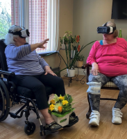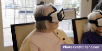 While the focus of the VR program remains offsetting further decline into Alzheimer’s/dementia, long term care staff were able to utilize the technology to decrease and limit social isolation amongst the population, who were confined to their rooms for much of the pandemic. Our partners, Rendever, have designed their technology so that multiple users can participate at once, encouraging discussion and providing a crucial social element during a time where local seniors were at increased risk of social isolation.