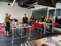Cooking Connections offers four culinary activities around which team-building is based, all of which are complicated (or perceived to be) and can be intimidating to the average home cook. The four activities are sushi-making, dumplings from scratch, cream puffs and eclairs, and baking a wide variety of different cookies. The kitchen is set up with four tables, which can accommodate up to five people each. Each table works together to create their culinary masterpiece, which can then be shared with the wider group. VPL’s Culinary Literacy Specialist spent several months developing and designing the sessions, using timings from library programs to target topics that were complicated enough without the likelihood of running over the allotted time. VPL’s Public Service Team attended the first Cooking Connections session as an internal trial run. It was both delicious and enlightening! Marketing created a postcard promoting the service and feature it periodically in the newsletter.