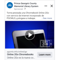 PGCMLS collaborated with the school on a digital literacy program series. The school offers space (addresses transportation barriers, improves trust and buy-in) and help identifying and recruiting families. PGCMLS provides data-included Chromebooks for every participant, literacy programs for kids, instruction 8 modules in Spanish and Dari focusing on high-need skills - computer basics, using school apps and library resources to support children’s education, job searching, English language learning.