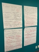 The biggest challenge -- and opportunity -- of this initiative was conducting community listening with people with memory loss. We used several strategies, including slowing the pace down, individually asking attendees, rewording questions in multiple ways and involving caregivers as much as possible. Visual prompts also helped. As the Library’s Older Adults program manager facilitated the session, large pieces of butcher paper were filled with answers to questions such as “What Brings You Joy?” and “Have You Recently Attended a Gathering that Left You Inspired?”