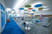 The innovative design of the Arthenia L. Joyner University Area Community Library allows it to function as a school-public partnership library with a visually and physically separate school media center portion that easily transitions to the children’s area of the public library during non-school hours.