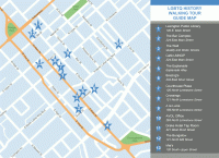 The tours are designed to be half-hour- to hour-long experiences. Audio is streamed or downloaded from the library’s website and multiple apps, using smartphones, tablets or transfer to an MP3 player. It can be experienced as a whole or for individual stops, with jaunty pause music to help with stop transitions. Printable maps are available on our website, and brochures with maps and stops are available at libraries and the city visitor center. The only requirement for download is a mobile media player.