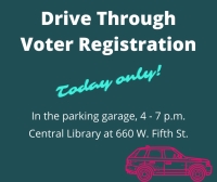 Voter registration assistance is best handled face to face so customers can be provided with the official form they need to register. We did not want to invite patrons to gather indoors at an information table due to the precautions we have in place because of the pandemic. This is our second National Voter Registration Day in a row where we set up an information table and computer in our one-way parking garage to assist patrons as they drove past, without having to leave their cars.