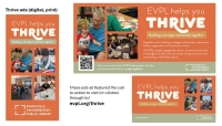 By asking people how EVPL helps *them* Thrive, and then visibly sharing those responses, we create top-of-mind awareness of the impact of the library to our community. The statement “EVPL Helps You Thrive” also prompts those who see the message to consider how EVPL helps them and/or their family Thrive, how that might be true for the others, and encourages reflection on how they might make the most of this community resource.