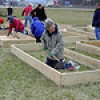 St. Louis County Library and Gateway Greening set an initial public meeting date of August 1 at the branch to gauge community interest. On August 1, we knew we had strong community interest and support when 35 enthusiastic people attended the meeting where we discussed the process of establishing a community garden, outlined the support the library and Gateway Greening would bring to the project and gathered contact information. A second planning meeting was scheduled for the following month at which four individuals volunteered to form the garden planning team. These planners communicate with the other gardeners and collaboratively make decisions about the type of garden they want, the membership fees, and rules governing ongoing maintenance and conflict resolution. The final garden plan of a 20-bed community garden was a collaborative effort between St. Louis County Library, Gateway Greening and the community gardeners themselves. The plan was in place by early 2013 and also included a butterfly garden adjacent to the vegetable plots. St. Louis Audubon Society partnered with us to make the native plant selections. The library arranged for a soil test, installed a water line and a paved path in order to increase accessibility. On Saturday March 23, community gardeners, Gateway Greening and St. Louis County Library staff and corporate volunteers assembled and set the raised beds, filled them with top soil and compost and prepared and planted the butterfly garden within a five hour period. Since snow was expected the following day, no vegetables were planted that day.