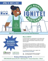 The Fairfax County Public Library partnered with the Town of Vienna Economic Development Division and the Vienna Business Association to offer a business series, IGNITE! Small Business Bootcamp, with the goal to provide expertise to small businesses. The free virtual series featured a variety of business-savvy professionals from across the region.