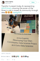 - The first public library-based Civic Data Scientist, who by working with the community created a Civic Data Science Model and Toolkit