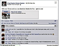 The promotion took advantage of digital production, delivery and demographic targeting tools in selected media. Advertisements on KCLS’ Facebook page ran October 17-18 and November 1-15, reached more than half a million viewers, and garnered nearly 3,000 “likes”, 112 “shares” and 125 “comments.” For OverDrive’s number one eBook circulating public library in the United States (1.3 million circulated in 2012), the KCLS eBook Flash Promotion increased eBook circulation another 9% during the time period, an impressive boost.