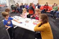 During each session, children and parents are divided into groups. Library staff work with the children to simulate activities that take place during a normal school day (story time, craft, forming a line, etc.). Across the room, parents observe their children as another library employee describes the importance of what the children are doing. Parents also receive a folder with materials from the local school district about school readiness.