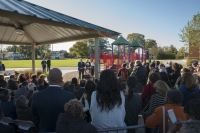 Baltimore County Public Library partnered with The Clinton Foundation as the first public library to install Talking is Teaching panels on the playground adjacent to a branch located in a low-income community. President Clinton attended the unveiling of the panels which equip caregivers with images and prompts to talk to children, building vocabulary.