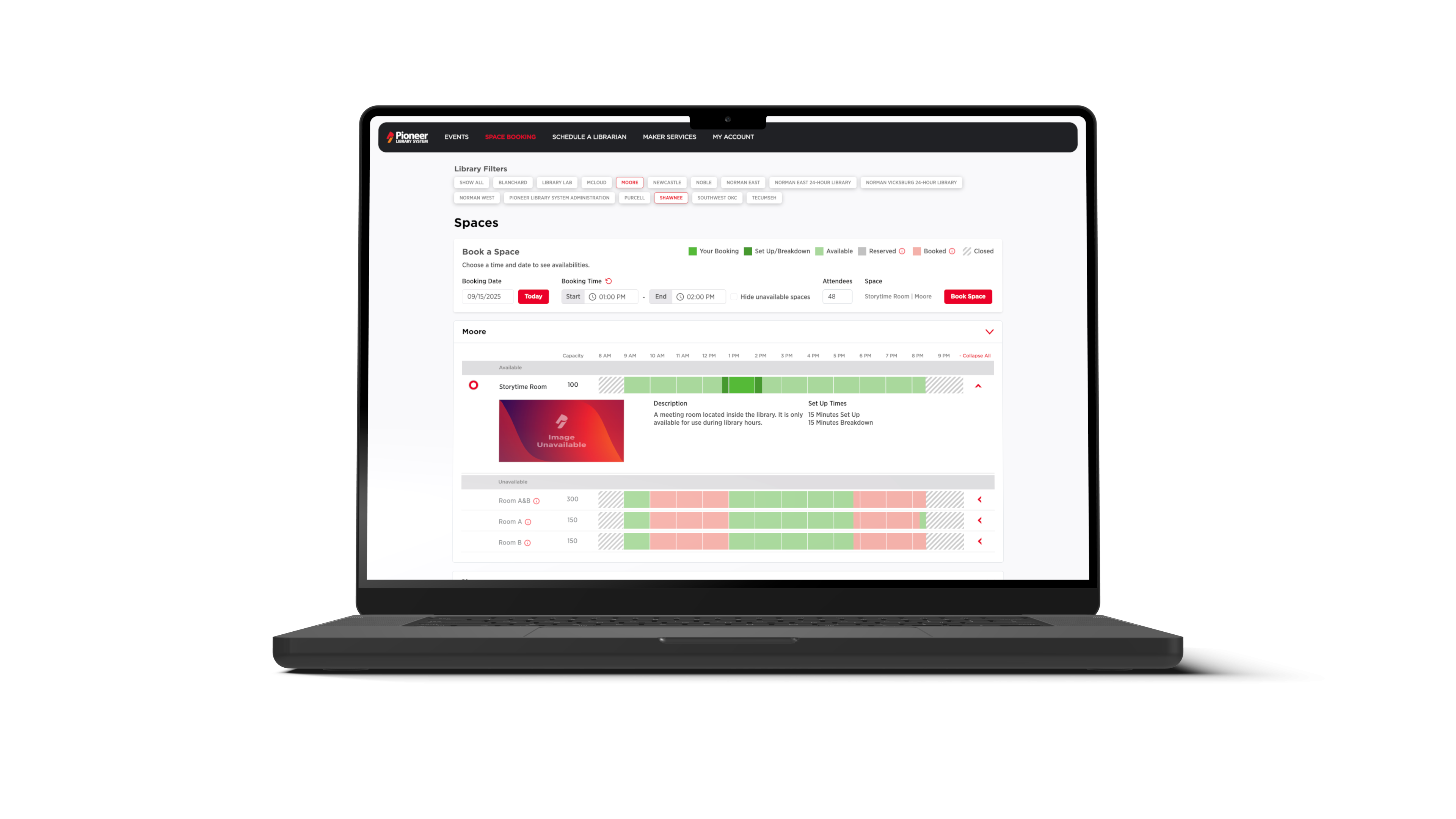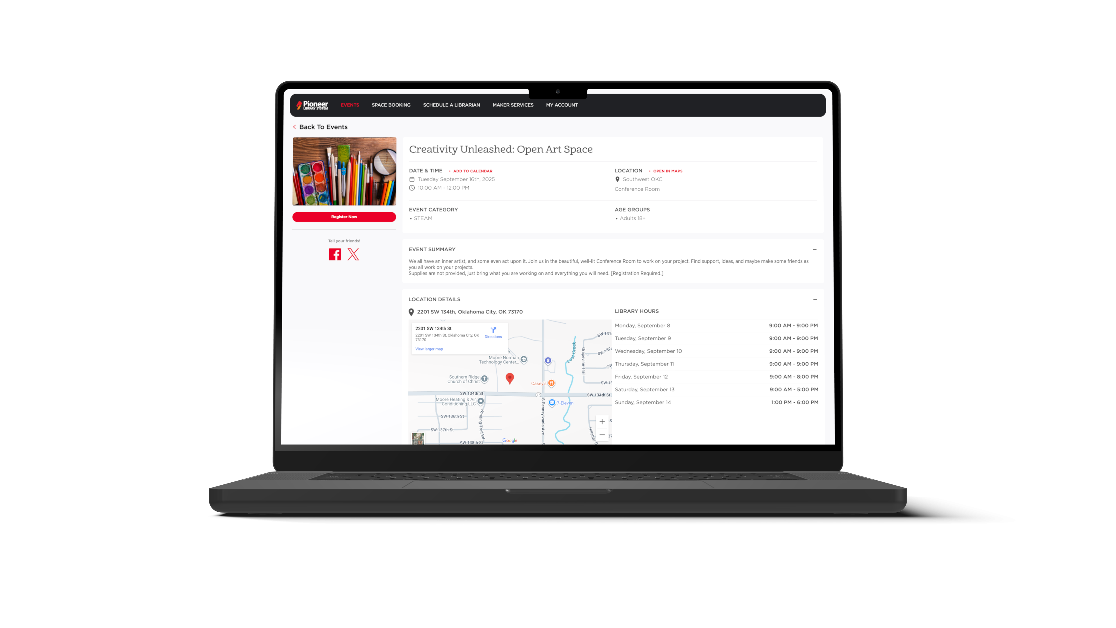 Pioneer Library System has long been recognized for its nimble, innovative approach to meeting customer needs, but was ready to transform its digital infrastructure to match modern community needs. Rather than settling for off-the-shelf calendar software, PLS developed Library Connect, a custom platform built with Phase 2, the same firm that created the PLS Connect mobile app a decade earlier. This branded solution consolidates previously separate systems for events, meeting room reservations, digital displays, and staff appointments into a single, cohesive interface. The platform's seamless integration across web and mobile creates an invisible bridge between the library's website and its service tools, ensuring customers never feel like they've left the library's digital space. By choosing to build rather than buy, PLS gained complete control over its technology roadmap, enabling rapid response to community feedback and flexibility to innovate at the speed of customer needs.