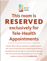 Dayton Metro Library created spaces to provide equitable online access to mental and behavioral health appointments. In partnership with providers across the region, DML made meeting room space available on a regular basis, providing the technology, privacy and access necessary for a positive virtual mental health visit.