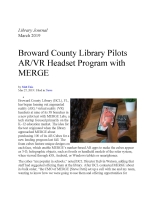 Broward County Library began a pilot program loaning augmented/virtual reality (AR/VR) MERGE Cubes to customers in 2018 and extended it to include MERGE headsets in 2019. MERGE gear allows users to interact with 3-D objects for both educational and entertainment purposes, offering an immersive experience that features cutting-edge technology.