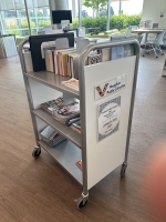 Through an innovative partnership with the hospital's volunteer department, we have developed a Library Book Cart. Facilitated by hospital volunteers, this cart goes room-to-room, delivering library materials. Book cart Items are purposefully curated to be engaging, informative, thematically appropriate, and in a variety of languages.