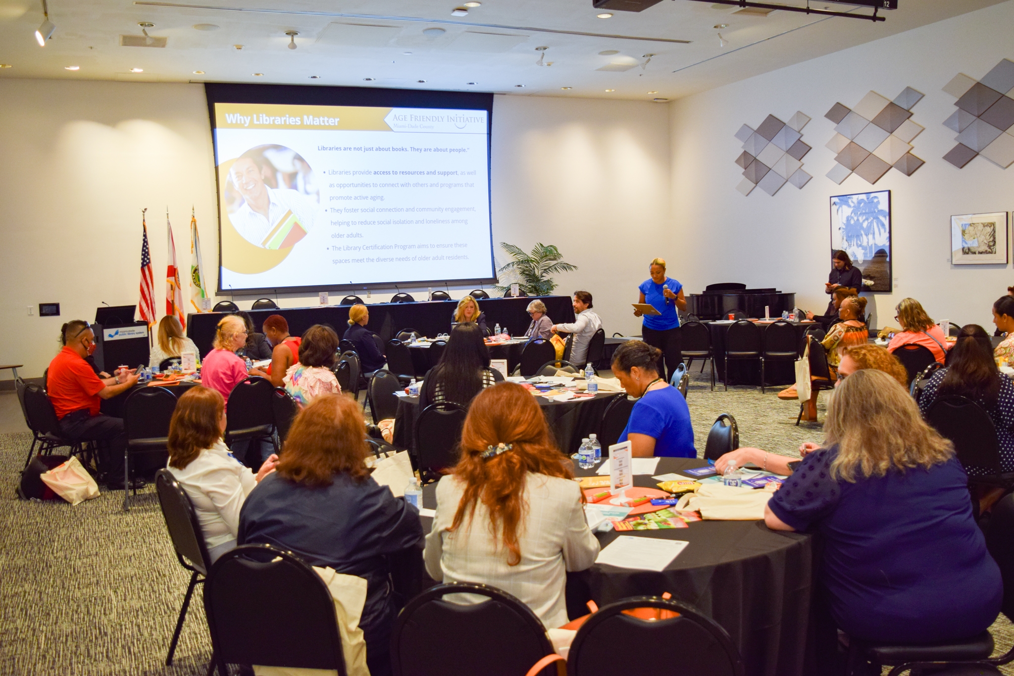 The Age-Friendly Library Certification Toolkit has already demonstrated measurable impact. The Miami-Dade Public Library System achieved Gold-level certification, one of four recognition tiers (Bronze, Silver, Gold, Platinum), reflecting strong performance across accessibility, programming, and engagement criteria. The toolkit’s launch event brought together libraries across the county, inspiring the independent City of North Miami Beach Library to begin its own certification process. The Miami-Dade Age-Friendly Initiative is now sharing this model with other partners statewide to encourage adoption. Internally, staff reported renewed awareness of older adults’ needs—particularly in facilities planning—and enthusiasm for improving inclusivity across all services. Feedback underscores a shared commitment to making every library a welcoming and supportive space for all ages.