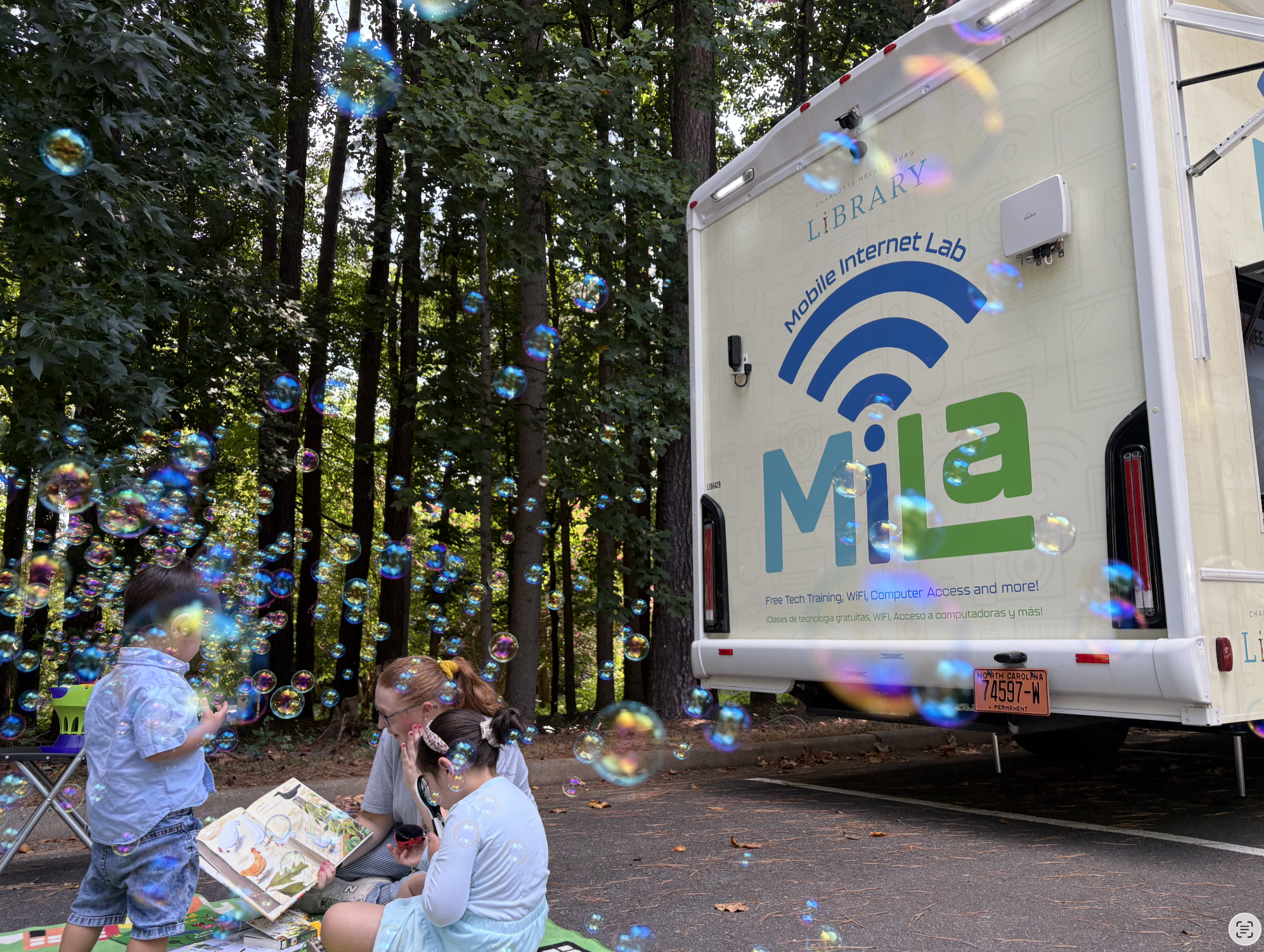 programming directly to underserved neighborhoods. Operating as Charlotte Mecklenburg Library’s first mobile tech lab, MiLa meets residents where they are—from senior centers and apartment complexes to community hubs—offering on-site learning stations, device access, and one-on-one support. This initiative transforms how libraries provide equitable access to opportunity, connecting adults and families to career resources, online learning, and community support systems without requiring transportation or prior digital skills.