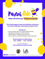 In November 2020, LA County Library launched Parent-Ade — a live virtual series that provided resources to parents and caregivers as they navigated the challenges of distance learning. Events took place weekly — first in English, then in Spanish — and covered diverse topics with helpful discussions and tips from experts in the field.