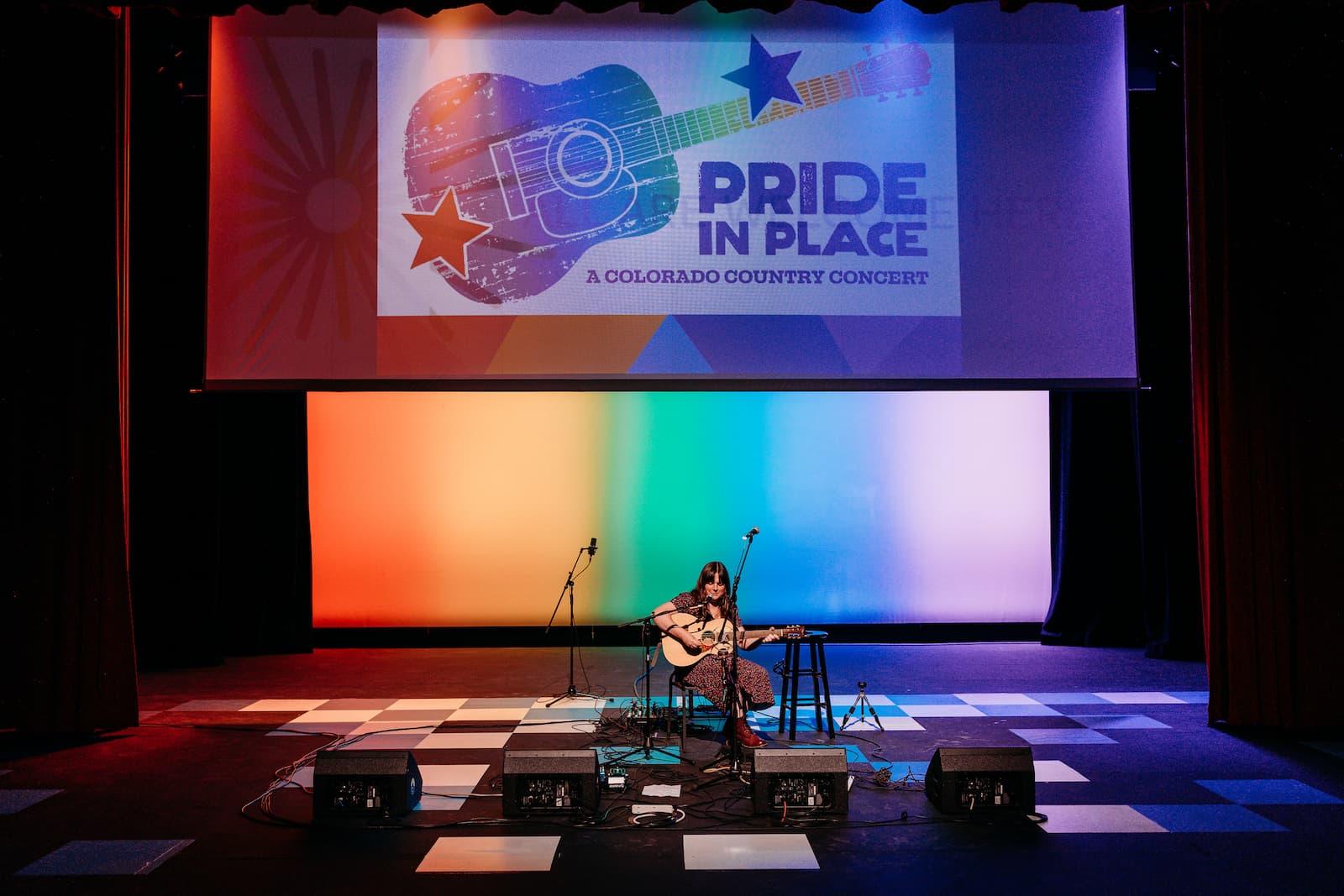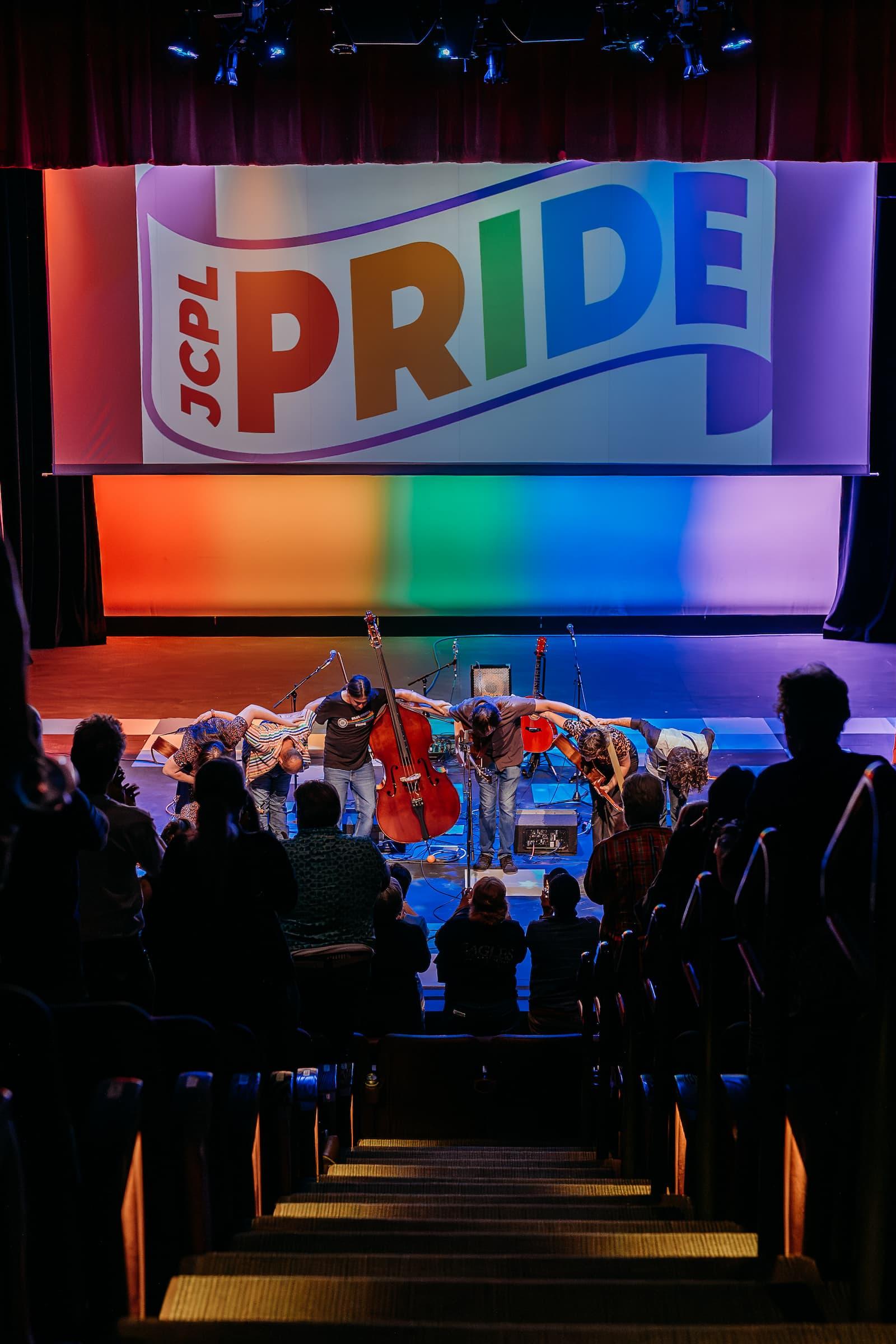 On June 12, 2025, the Jefferson County Public Library (JCPL) put on a free bluegrass concert at the Arvada Center as a part of our Pride Month programming. Inspired by the international Bluegrass Pride movement, the show featured four different LGBTQIA+ Colorado acts. Called Pride in Place, this concert represented a celebration of place, pride, sexuality, identity and love.