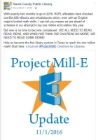 The goal of "Project Mill-E" was to be the first library in Texas to circulate over a million items in Overdrive in a calendar year, making digital circulation larger than any single branch in the Harris County Public Library system.