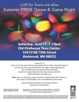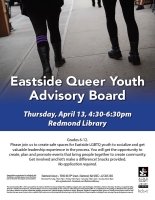 East King County has minimal established safe, public spaces for LGBTQ youth to come together in a social setting that encourages them to explore and express their identities. "Rainbow Teen Advisory Board" is intended to fill this void and also provide LGBTQ youth with an opportunity to be leaders building a solid sense of community for themselves and their peers.