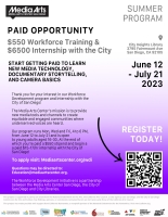 Our collaboration with Media Arts allows us to train the next generation of library workers in a documentary style of storytelling that we desperately need in our field. The program pairs the intern with a mentor in the creative economy that assists them throughout their internship with technical advice on their media projects. While in training the interns receive a stipend, transit passes, and a clothing allowance. The intern graduation includes a red carpet, film festival style screening of their documentaries.