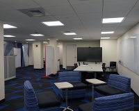 Flexibility was a core tenant in developing the Small Business and Nonprofit Workspace. The space utilizes mobile furniture to promote a variety of uses. One side of the room can be configured as a classroom with tables and seating for 30 attendees or it can be divided into meeting stations with movable room dividers for privacy.