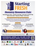 Starting Fresh is a one-stop shop that seeks to connect participants with tools and resources for a successful reentry into society - including support with job preparation, financial solutions, housing assistance, educational opportunities, mental health services, and substance abuse support. Attendees can receive personalized guidance from experts, join hands-on workshops, and benefit from vital services like health screenings and technology training.