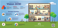 San Francisco Public Library (SFPL) recently undertook a comprehensive strategic planning effort rooted in community and staff feedback to reflect and adapt to the evolving role of public libraries. The new Plan, “Vision 2030,” incorporates feedback from nine branch tours, 2,283 user survey responses, 19 community focus groups, 604 non-library user survey responses, 460 staff survey responses and 71 internal meetings and workshops. A team of 32 staff ambassadors from all levels of the organization participated in development of the plan from start to finish, providing valuable insights and building internal support among staff. Vision 2030’s foundation in patron and staff insights resulted in a modern vision and articulable roadmap for San Francisco Public Library that is reflective of patron needs and re-envisions how 21st century libraries can best serve their communities.