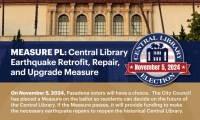 Measure PL, approved by voters in November 2024, funds crucial earthquake repairs and upgrades to benefit Pasadena residents for another 100 years. The issuance of $195 million in bonds will reopen Central Library and ensure the library’s continued cultural and historical ties to the community.