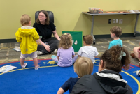 We had 24 qualified applicants. The selected 2 received a full day of training and then continuous support by our children’s manager. Their duties included program preparation, story times, one on one work, and help at performer/special events.