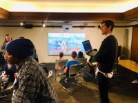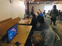 The challenges were space, organization and owning enough consoles and copies of the game. Members of the local gaming community were contacted. The response and enthusiasm were incredible. Participants were generous in their willingness to bring and connect their own consoles and games. We also used a large projection display as a giant gaming station dedicated to a massive eight-player battle. This provided casual players, those eliminated in the tournament or those waiting for their next match an opportunity to play.