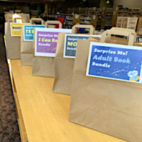 Surprise Me! Bundles give customers a great selection of carefully chosen library material without the hassle of requesting individual items or filling out a staff recommended form. Bundles are categorized by age range, covering birth to adult, and include both fiction and nonfiction in various formats. Customers can borrow as many as they would like.
