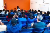 The "Teen Transportation Safety Town Hall" on April 13, 2024, at the Hyattsville Branch Library, was a pivotal community event driven by local teens from the Washington Area Bicyclist Association’s (WABA) Vision Zero Youth Institute who met twice a week at the library during the 2023-2024 school year. Sparked by the tragic deaths of two young Riverdale Elementary students in November 2023, the teens worked with the Library to plan a large-scale advocacy and awareness event. The event brought together teens, government and elected officials, and community leaders to discuss transportation safety, promote Vision Zero initiatives, and empower youth to lead change. The Town Hall served as a platform for direct engagement between elected officials and teens, aiming to translate community concerns into concrete actions for a safer environment. The Town Hall symbolizes the collective effort of youth, libraries, and local government in fostering safer, more equitable streets.