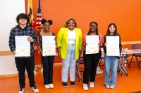 The "Teen Transportation Safety Town Hall" on April 13, 2024, at the Hyattsville Branch Library, was a pivotal community event driven by local teens from the Washington Area Bicyclist Association’s (WABA) Vision Zero Youth Institute who met twice a week at the library during the 2023-2024 school year. Sparked by the tragic deaths of two young Riverdale Elementary students in November 2023, the teens worked with the Library to plan a large-scale advocacy and awareness event. The event brought together teens, government and elected officials, and community leaders to discuss transportation safety, promote Vision Zero initiatives, and empower youth to lead change. The Town Hall served as a platform for direct engagement between elected officials and teens, aiming to translate community concerns into concrete actions for a safer environment. The Town Hall symbolizes the collective effort of youth, libraries, and local government in fostering safer, more equitable streets.