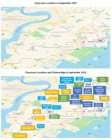 - This increased classrooms from one room downtown to 30 spaces across the city