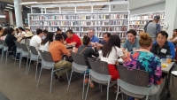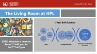 The Living Room has three key components: (1) Library leads the community on a topic; (2) Community participates in discussion; (3) Food is served, featuring local vendors and international foods. Planning begins with engaging local partners to learn what the community needs in the long term. The library becomes the gathering place for local communities, exploring a range of topics from understanding different cultures, to safety, finance and mental health in a comfortable, trusting environment.