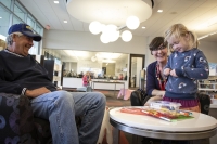 By working directly with The Gardens of Cedar Rapids, an assisted living facility, the library was able to ensure a consistent and excited group of senior citizen friends at each program. The public also attends and we see seniors and children come together to learn and share. Each week is built around specific themes, from Folk Song Sing-Alongs, to Pet Rock Exchanges, to Art Critiques. Each week offers unique experiences, but the sharing of stories and experiences between the generations is the bedrock of the program.